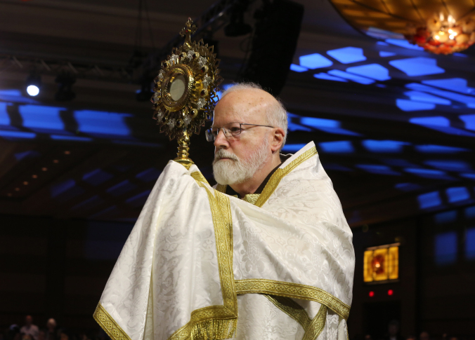 Boston Cardinal Sean P. O’Malley carries a monstrance during eucharistic adoration at the “Convocation of Catholic Leaders: The Joy of the Gospel in America” July 2 in Orlando, Fla. Leaders from dioceses and various Catholic organizations are gathering for the July 1-4 convocation. (CNS photo/Bob Roller)