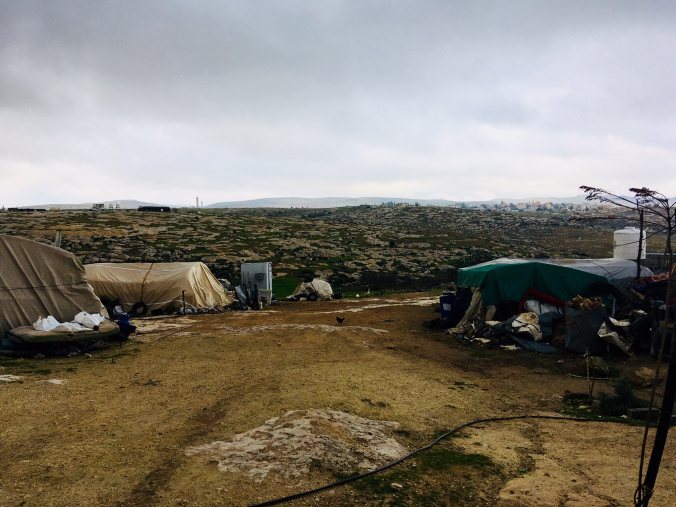 As our pickup crested the rock-strewn path and shuddered to a stop, I took in my surroundings. Up ahead, a cluster of tarp-covered encampments stood guard against the spitting rain, ungainly sights in an otherwise stunning landscape. Further away, a neat row of houses, jarring in their contrast, overlooked a broad sweep of valley. For a moment, our backseat sat in silence. Then, grinning through the rearview, our driver announced the words we now saw graffitied to a boulder: “Welcome to Susya.”